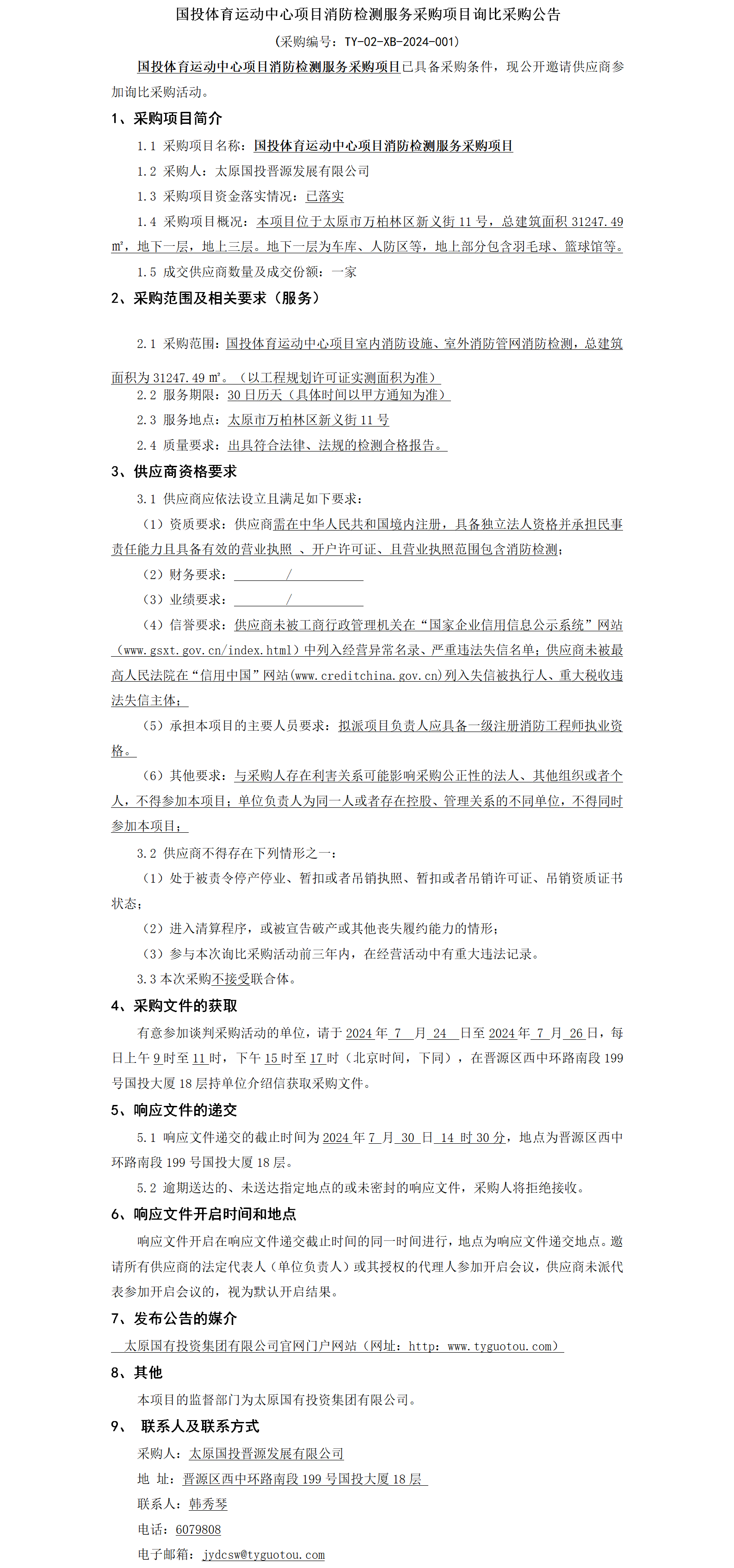 國(guó)投體育運(yùn)動(dòng)中心項(xiàng)目消防檢測(cè)服務(wù)采購(gòu)項(xiàng)目詢(xún)比采購(gòu)公告