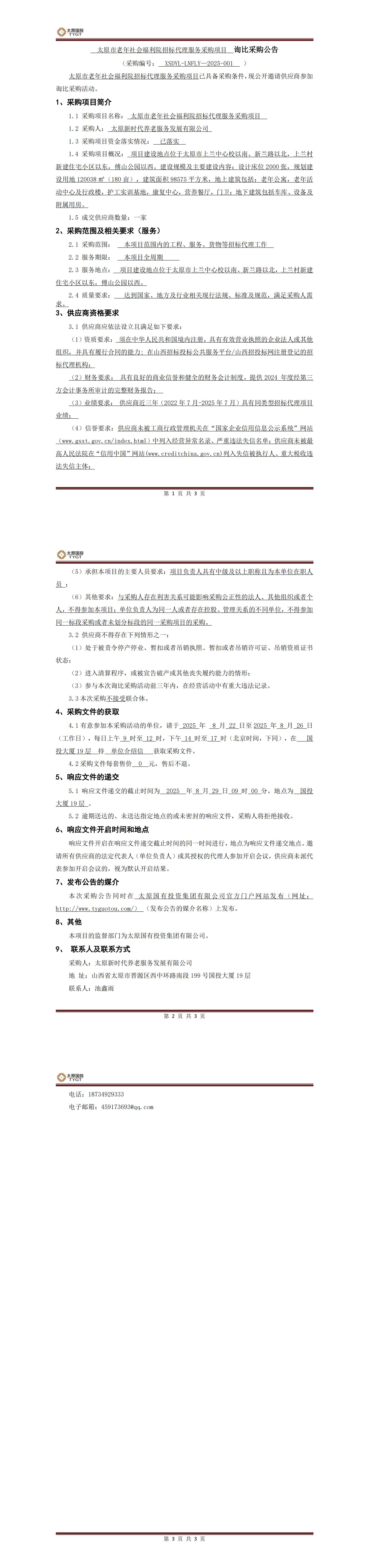 太原市老年社會(huì)福利院項(xiàng)目招標(biāo)代理詢比采購(gòu)公告