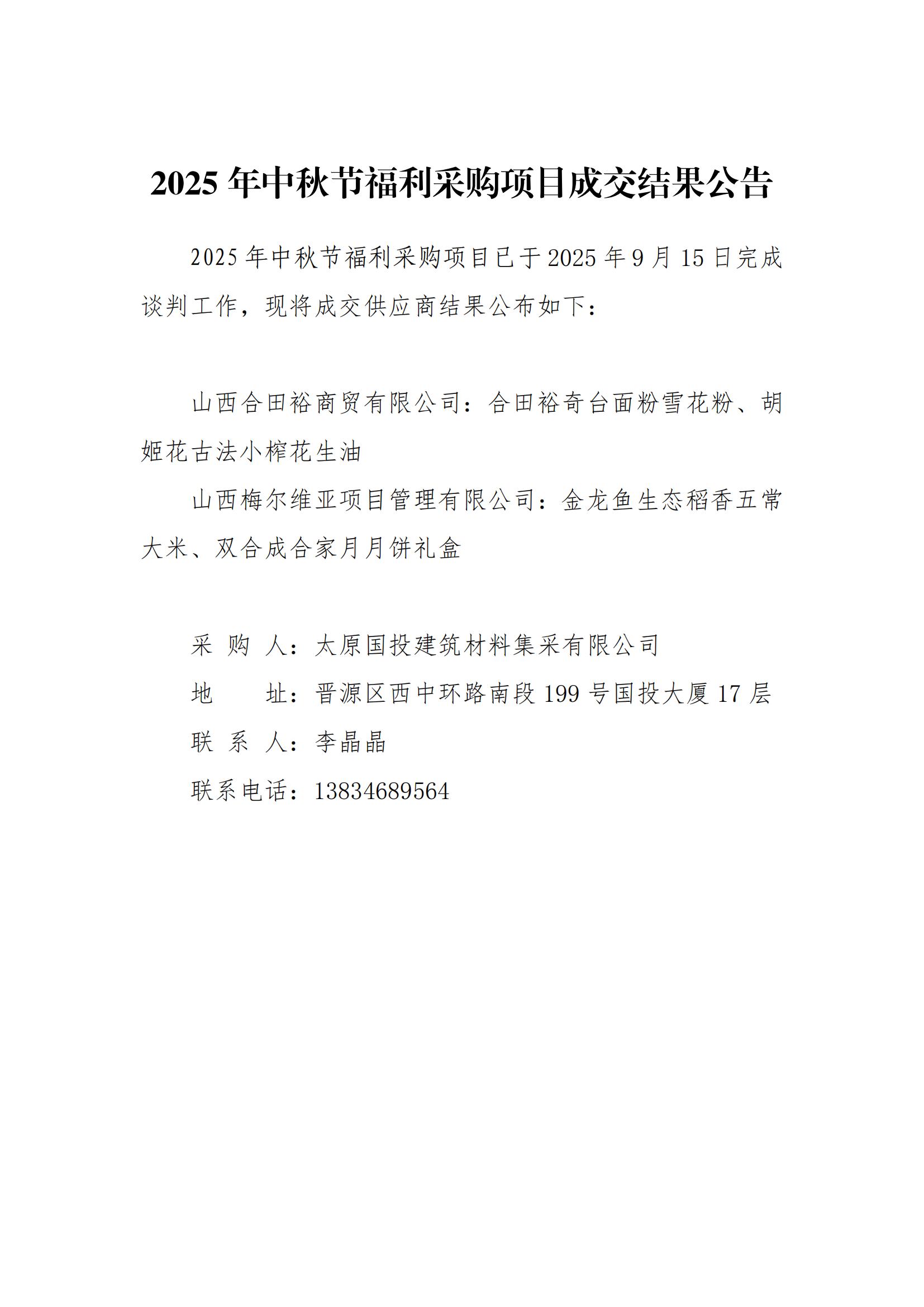 2025年中秋節(jié)福利采購項目成交結(jié)果公告
